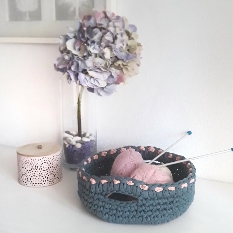 El canasto puede servir como contenedor de multitud de objetos, desde collares y elementos decorativos hasta los mandos de la tele y consolas o, incluso, artículos de costura o para hacer punto, como se aprecia en la imagen.