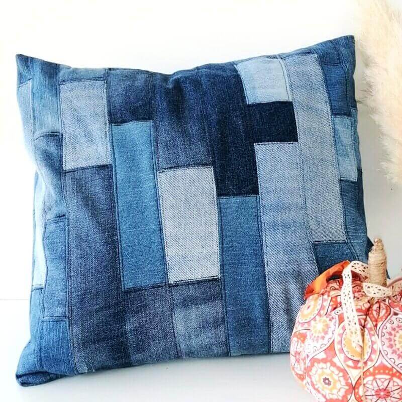 Cosida mediante la técnica del patchwork con retales de jeans, la elaboración artesanal de la Funda Cojín Denim supone, además, una apuesta por la reutilización y la sostenibilidad del planeta.